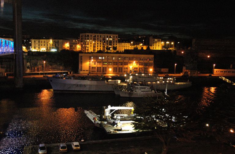 Vue de l'arsenal de Brest la nuit : mise en lumièreImmatriculation