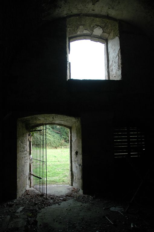 Vue du fort de Penfeld : exemple de caserne voutée avec entresol sur corbeaux accessible par une échelle. La pièce dotée d'une cheminée au rez-de-chaussée comporte une porte et deux baies ouvrant sur la place d'armesImmatriculation