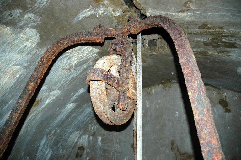 Vue du fort de Penfeld : détail de la poulie du puits situé sous le passage d'entréeImmatriculation