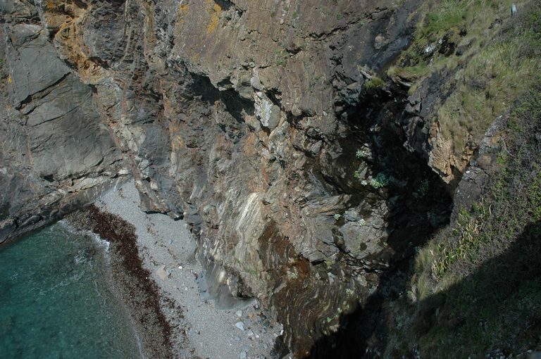 Vue des lignes de Quélern : la falaise au pied de la casemate implantée à l'extrémité ouestImmatriculation