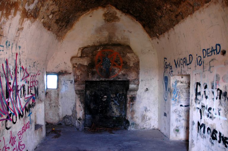 Vue intérieure du corps de garde de Guissény : cheminée et voûteImmatriculation