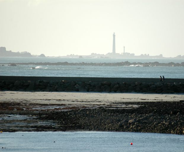 Vue de l'ensemble fortifié de Beg ar Skeiz : panorama, le phare de l'île ViergeImmatriculation