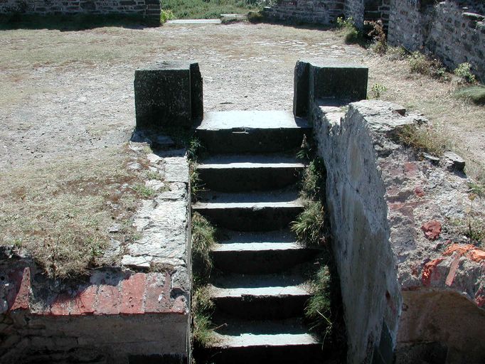 Vue du réduit de batterie de côte de l'île de l'Aber : terrasse, escalierImmatriculation