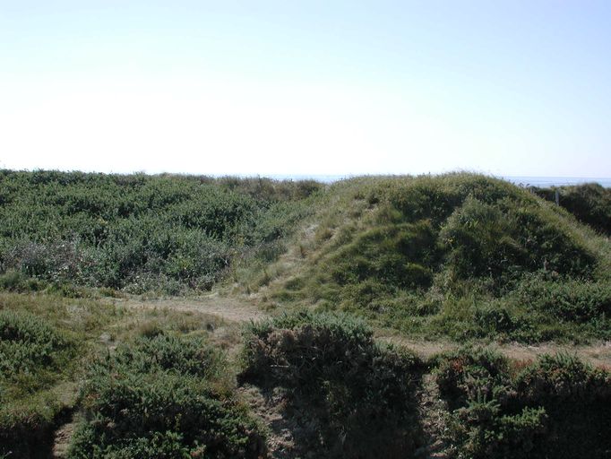 Vue du réduit de batterie de côte de l'île de l'Aber : la batterie extérieure envahie par la végétationImmatriculation