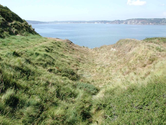 Vue du réduit de batterie de côte de l'île de l'Aber : fossé sec situé en avant du réduitImmatriculation