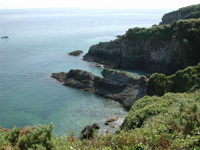 Crozon : vue de l'île de l'Aber, marée basse, falaisesImmatriculation