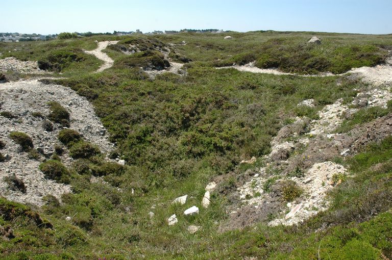 Vue d'un cratère de bombe depuis le sentier côtier (état en 2005)Immatriculation
