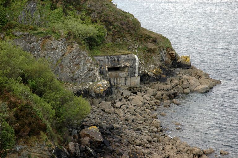 Batterie de rupture casematée (2 canons M de 32 cm modèle 1870-1884 sur affûts M modèle 1888) puis casemates (2 canons antichars de 5cm Kwk) (Cr 43), Pourjoint, au ras de l'eau (Roscanvel),