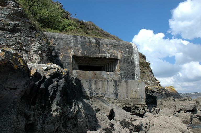 Batterie de rupture casematée (2 canons M de 32 cm modèle 1870-1884 sur affûts M modèle 1888) puis casemates (2 canons antichars de 5cm Kwk) (Cr 43), Pourjoint, au ras de l'eau (Roscanvel),