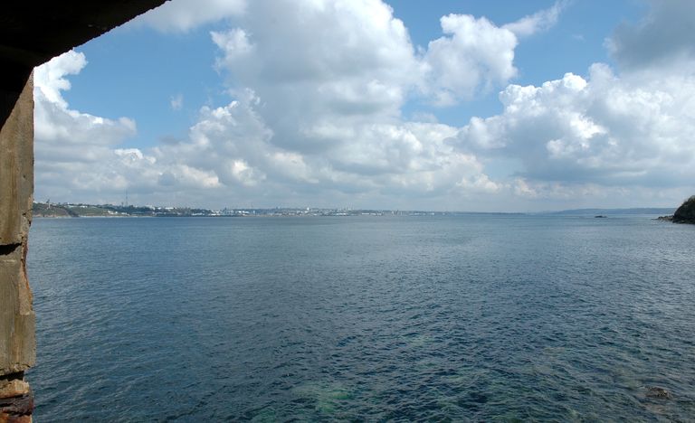 Batterie de rupture casematée (2 canons M de 32 cm modèle 1870-1884 sur affûts M modèle 1888) puis casemates (2 canons antichars de 5cm Kwk) (Cr 43), Pourjoint, au ras de l'eau (Roscanvel),