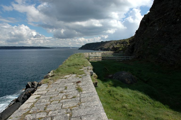 Vue de la batterie de Cornouaille : parapet. En arrière-plan : la ville de BrestImmatriculation