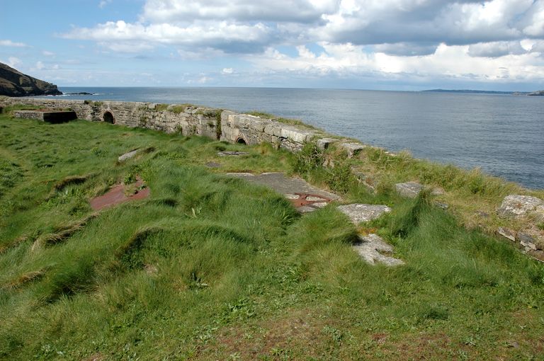 Vue de la batterie de Cornouaille : parapet. En arrière-plan : l'entrée du goulet de BrestImmatriculation