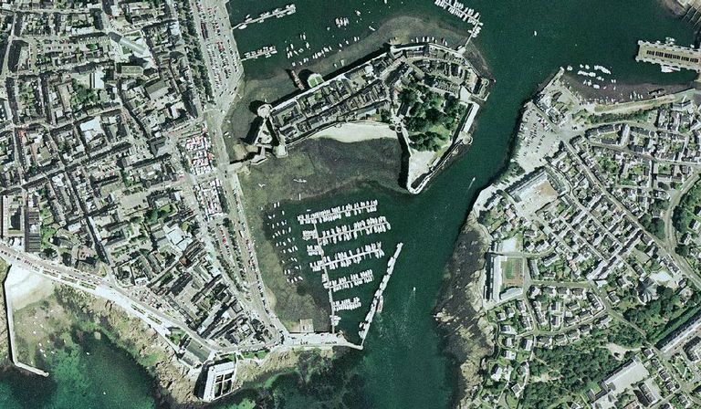 Vue aérienne verticale de la ville-close de Concarneau (Orthophotographies littorales 2000)Immatriculation