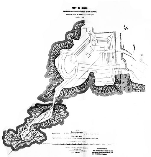 Plan du fort du Minou, Direction d'Artillerie du génie de Brest, 1893, par le colonel Directeur d'Artillerie : CollombImmatriculation