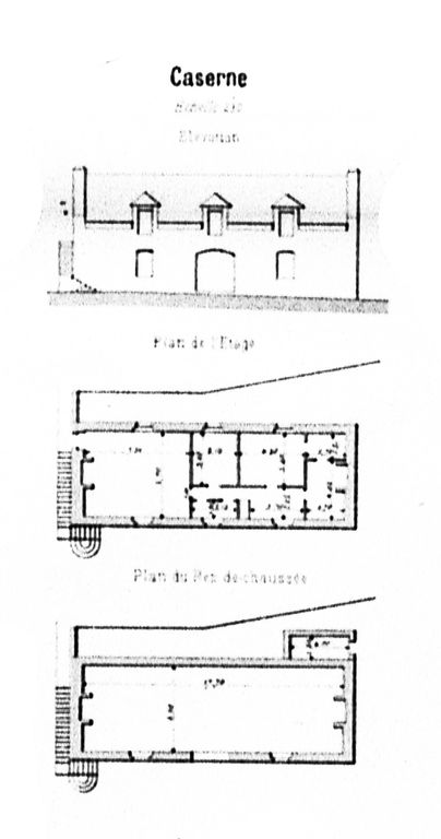 Plan et élévation de la caserne du fort du Minou, Direction d'Artillerie du génie de Brest, 1893, par le colonel Directeur d'Artillerie : CollombImmatriculation