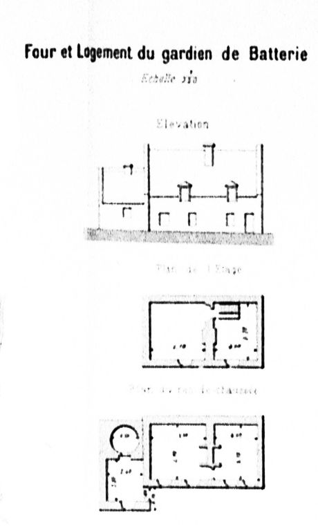 Plan et élévation du four et du logement du gardien de batterie du fort du Minou, Direction d'Artillerie du génie de Brest, 1893, par le colonel Directeur d'Artillerie : CollombImmatriculation