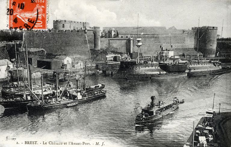 Vue générale du château de Brest, carte postale (M. J.)Immatriculation