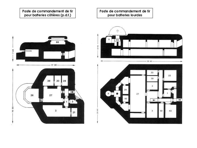 Typologies : poste de commandement de tir pour batteries côtières (pdt), poste de commandement de tir pour batteries lourdes. Document Andrea Santangelo (sources Rudi Rolf : Atlantic Wall Typology)Immatriculation