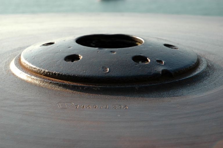 Cloche blindée pour mitrailleuse implantée sur un bunker : détail. La cloche est datée par millésime de 1939Immatriculation