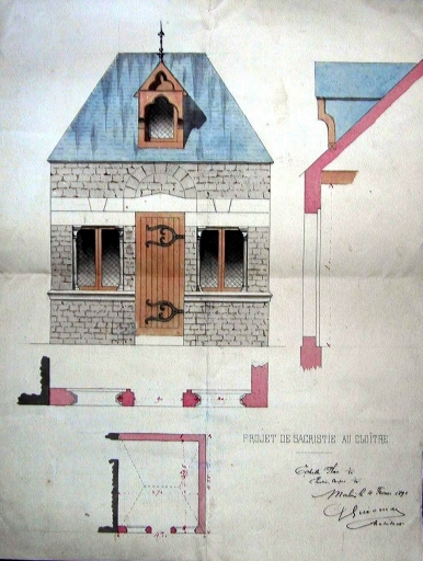Sacristie. Projet de Guiomar, architecte, 1891 (A. E. Quimper, fonds Bigot)Immatriculation