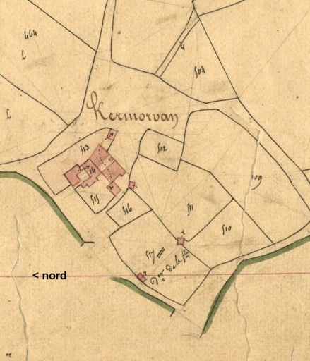 Extrait du cadastre de 1837, section K 1 (A.D. Finistère, 3 P 203).Immatriculation