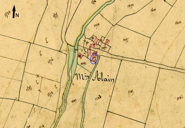 Moulin Alan. Localisation sur le cadastre de 1837Immatriculation