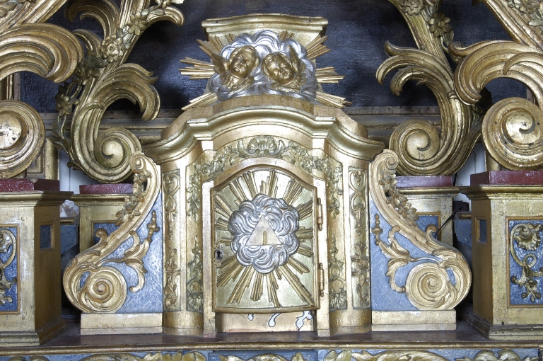 Ensemble du maître-autel : autel, tabernacle, exposition, 3 gradins d'autel, retable, 2 degrés d'autel,