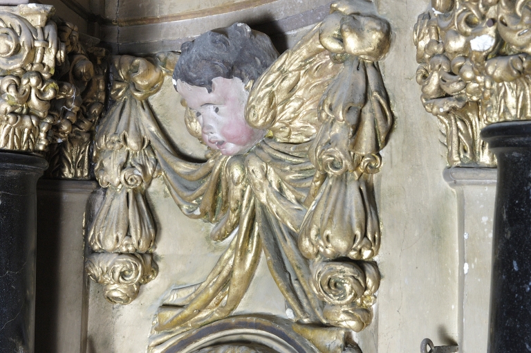 Retable, détail de l'angelot surmontant la niche latérale gaucheImmatriculation