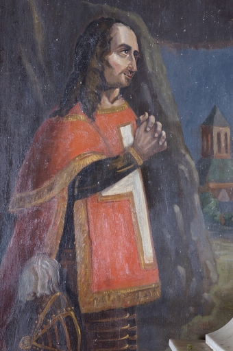 Tableau d'autel : Christ en croix, avec la Vierge et un donateur,