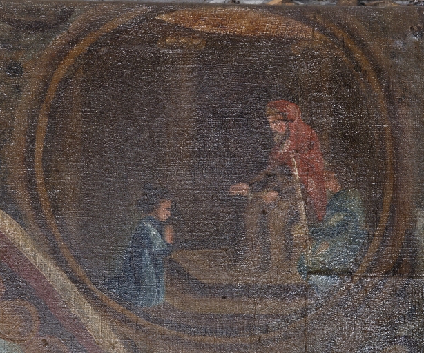 Détail du médaillon situé en haut à droite du tableau : Présentation de la Vierge au temple (?)Immatriculation