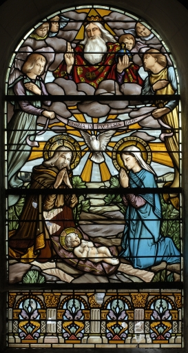 2 Verrières : Baies 1 et 2 : Annonciation, Dieu le Père et La Sainte Famille,
