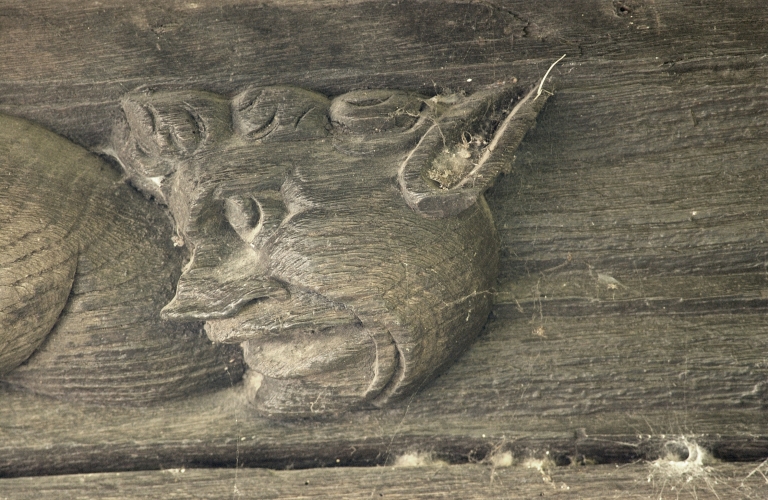 Sablière : tête d'homme de profil vers la gauche avec oreille pointueImmatriculation