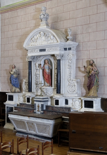 Ensemble de l'autel de la Sainte Famille : autel, tabernacle, 2 gradins d'autel, retable,