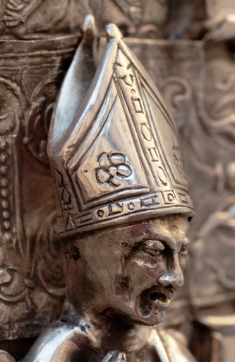 Croix de procession : revers, détail tête de saint-SulpiceImmatriculation