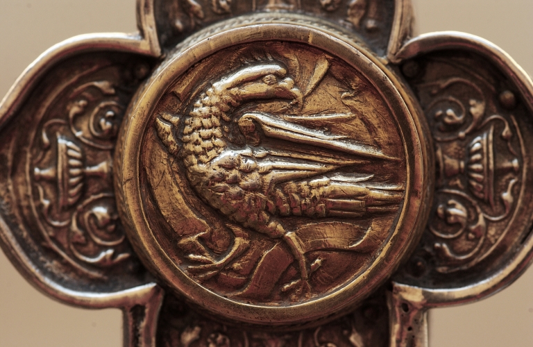 Croix de procession : avers, médaillon aigle de saint JeanImmatriculation