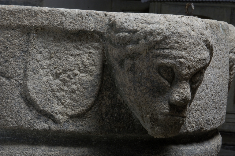 Décor de la vasque : visage et écussonImmatriculation