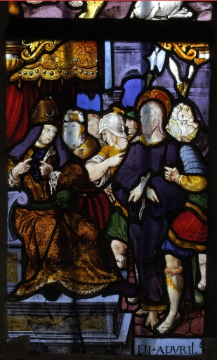 Verrière à personnages de la maîtresse-vitre (baie 0) : Passion du Christ, Résurrection, Descente aux enfers, Dieu le père,