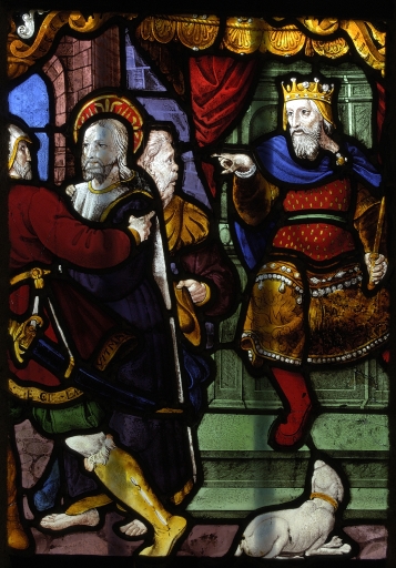 Verrière à personnages de la maîtresse-vitre (baie 0) : Passion du Christ, Résurrection, Descente aux enfers, Dieu le père,