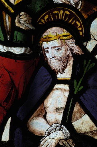 Verrière à personnages de la maîtresse-vitre (baie 0) : Passion du Christ, Résurrection, Descente aux enfers, Dieu le père,