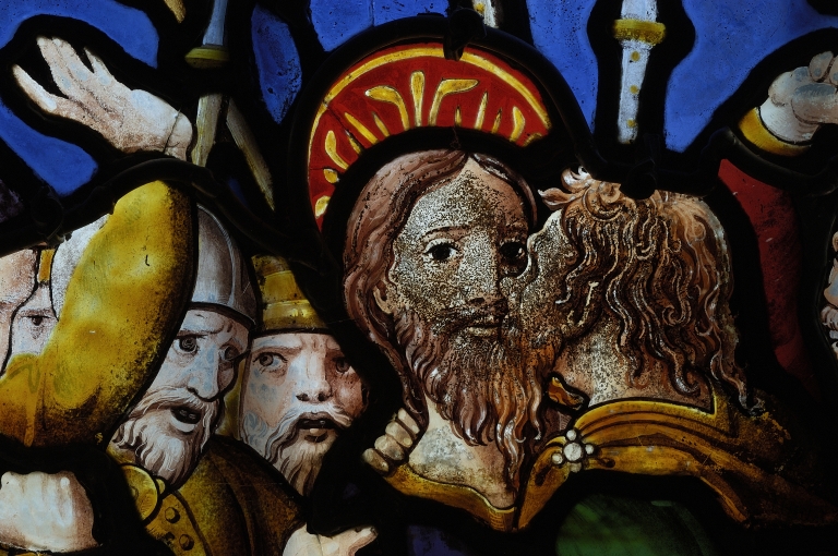 Verrière à personnages de la maîtresse-vitre (baie 0) : Passion du Christ, Résurrection, Descente aux enfers, Dieu le père,