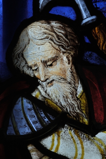 Verrière à personnages de la maîtresse-vitre (baie 0) : Passion du Christ, Résurrection, Descente aux enfers, Dieu le père,