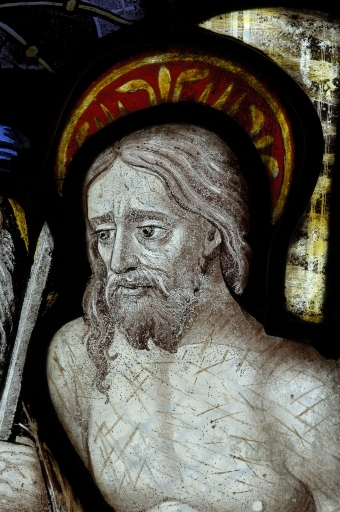 Verrière à personnages de la maîtresse-vitre (baie 0) : Passion du Christ, Résurrection, Descente aux enfers, Dieu le père,