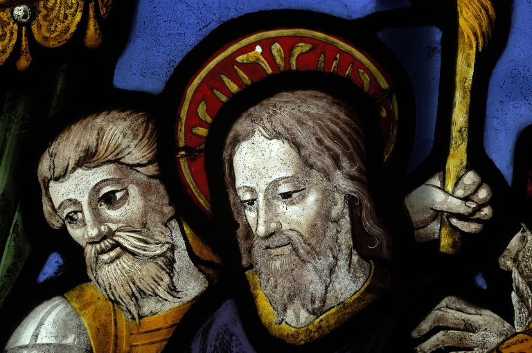 Verrière à personnages de la maîtresse-vitre (baie 0) : Passion du Christ, Résurrection, Descente aux enfers, Dieu le père,