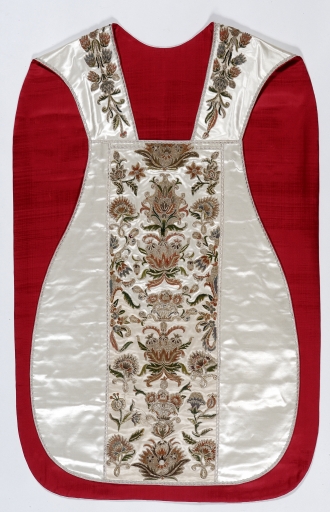 Ornement blanc 5 : chasuble, bourse de corporal, étole, manipule, pale, voile de calice,