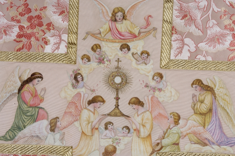 Dos de la chasuble, décor de la croisée : anges adorant le Saint SacrementImmatriculation