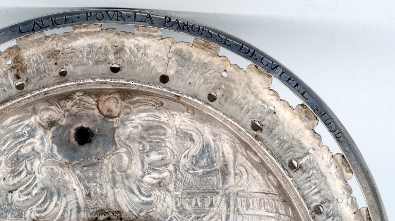 Calice : détail de l'inscription gravée sous le piedImmatriculation