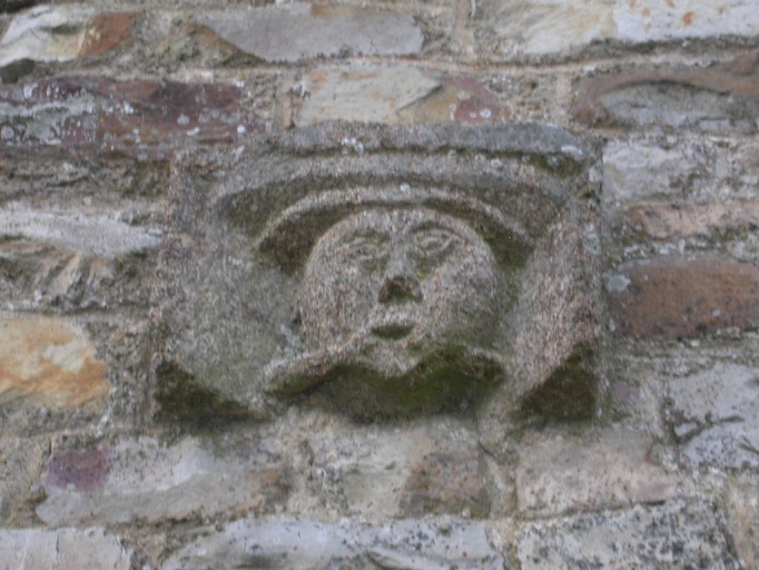 Visage sculpté sur le mur est de la remiseImmatriculation