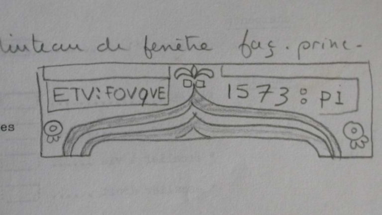 Linteau sculpté et daté, dessin de F. Chanu, 1971Immatriculation