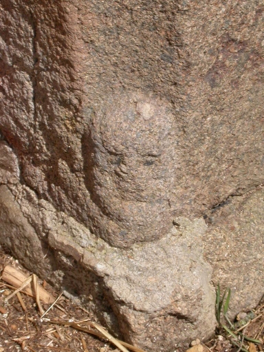 Tête sculptée sur une pierre du jambage de la porteImmatriculation