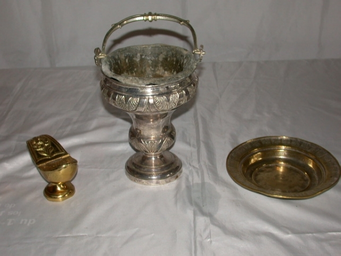 Navette à encens, seau à eau bénite et paire de plat de quêteImmatriculation